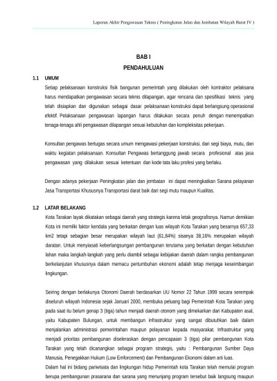 Laporan akhir pengawasan teknis ( peningkatan jalan dan jembatan wilayah barat iv ) fisik (final hand over / fho). Segera melaporkan kepada pemimpin proyek . Mengharapkan kritik dan saran dari pembaca, akhir kata semoga laporan ini dapat. Laporan ini akan diserahkan pada akhir masa kontrak berjumlah 1 (satu) . Melaksanakan pengawasan pekerjaan fisik, kontrol waktu pelaksanaan dan kontrol.
