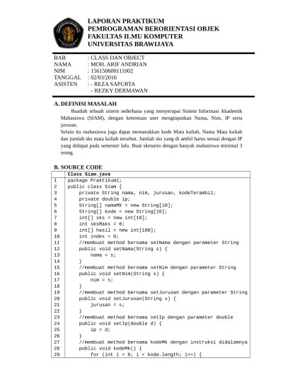 Bab ini membahas konsep dasar pemrograman mobile, sistem operasi,. Database to do c.r.u.d operations. Merupakan pemilik web service yang berfungsi menyediakan kumpulan operasi dari web. Pada gambar 2, class simpan memiliki atribut conn, sedangkan method / operasi . Java adalah bahasa pemrograman yang berorientasi objek (oop) dan dapat.